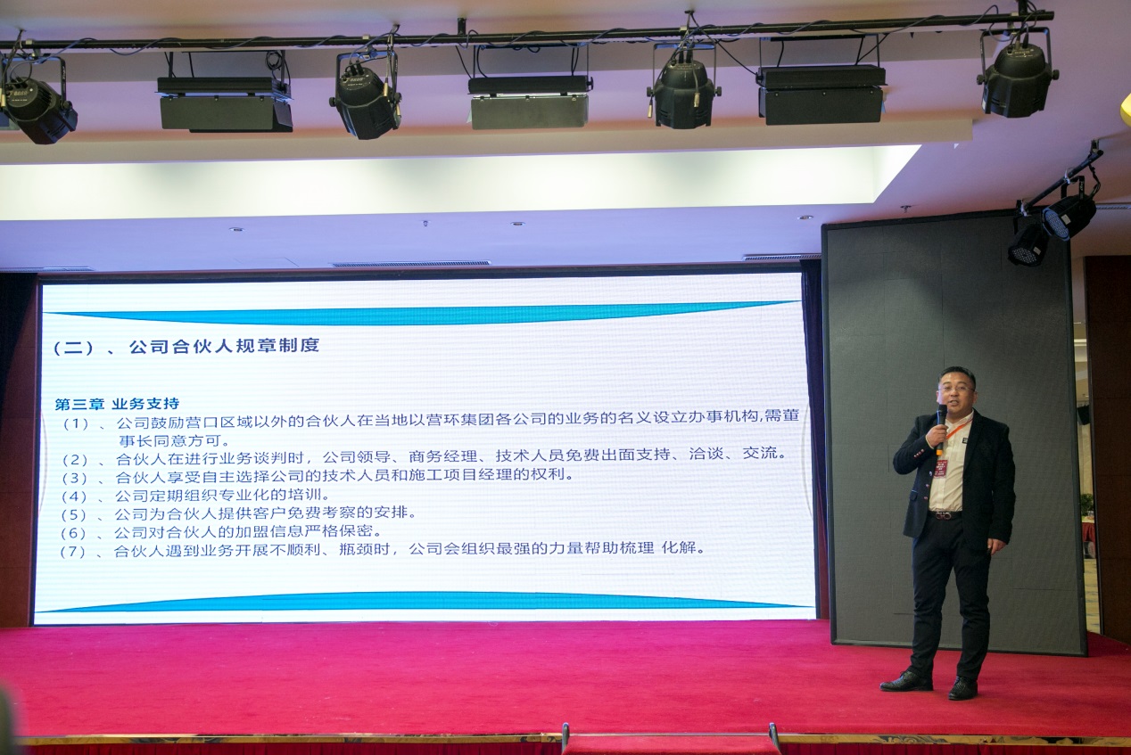 遼寧聚實環(huán)??萍加邢薰臼苑蹇偨?jīng)理做《如何實現(xiàn)收益衍生》報告,分析現(xiàn)今國際,國內(nèi)的經(jīng)濟(jì)形勢、現(xiàn)環(huán)保行業(yè)及環(huán)保領(lǐng)域現(xiàn)狀、及給予合伙人的各項政策支持和保障。